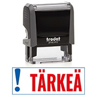 Trodat Office Printy 4912 självfärgande textstämpel, konstant text "TÄRKEÄ", avtrycksfärg blå-röd, 18 x 47 mm